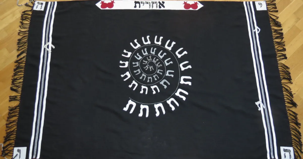 The word “end” there is ah-ha-reet—the crown of the black Tallit, and it begins with an aleph, and ends with a tav!