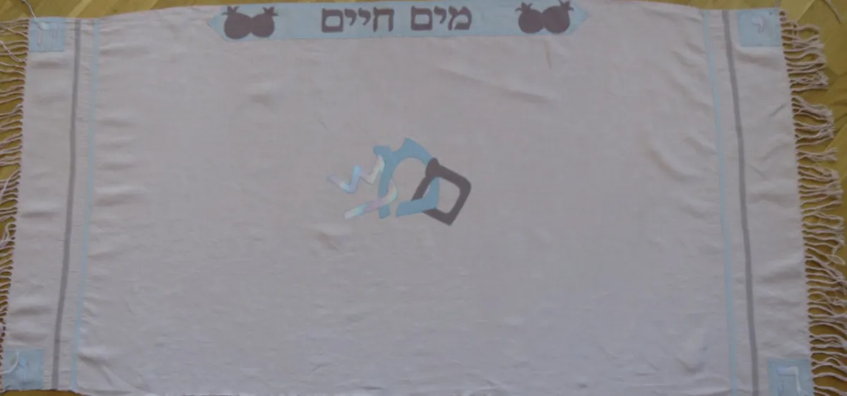 This Living Tallit is a mantle of divine love, embodied in the Hebrew letter Mem (מ)—the symbol of water (mayim), the womb of creation, and the primordial chaos from which order and life emerge. Through a profound meditative vision, I discovered: Mem is love.